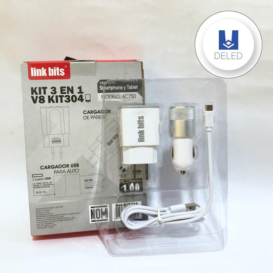 LIQUIDACION Cargador Completo de Pared, Automóvil y Cable USB V8 2.1A, Kit 3 en 1, LINK BITS KIT304Proveedor:LINK BITSPrecio habitual $ 99.00 MXNPrecio habitualPrecio unitario por$ 139.00 MXNPrecio de oferta $ 99.00 MXNOferta