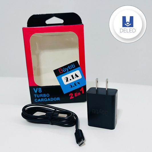 Cargador Completo con Cable USB V8 Micro USB 2.1A BUYTITI CAR-010