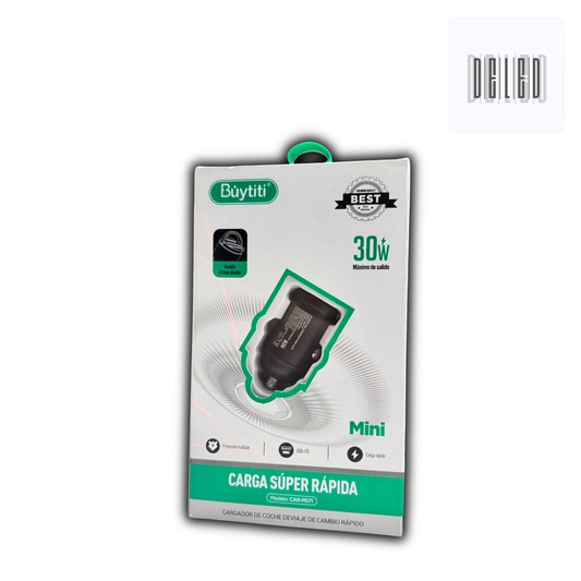 Cargador / Adaptador de 2 Puertos TURBO USB-C Tipo C y USB QC3.0A para Automóvil BUYTITI CAR-PD71