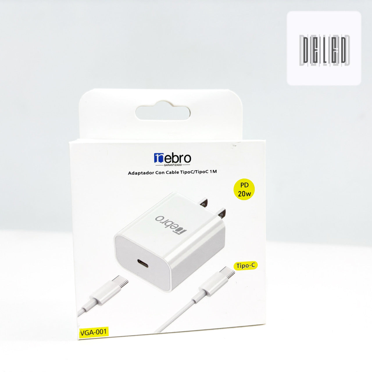 Cargador Completo con Cable Tipo C a Tipo C 20 watts TURBO NEBRO VGA-001